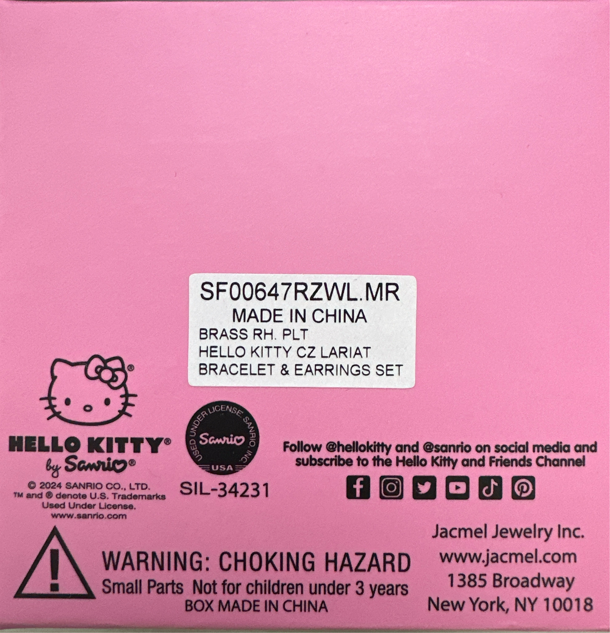 Best Price on Hello Kitty here! Iconic cat head with bow is featured in this lovely bracelet and stud earrings set with your favorite feline brand! Bracelet has drawstring closure and set comes with a white and pink gift box.