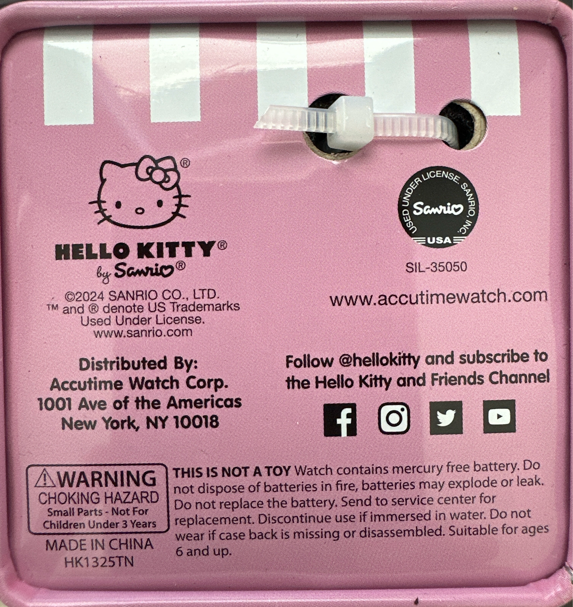 Best Price on Hello Kitty here! Sanrio brings you this trendy and flashy watch featuring digital time readout that can flash when side button pressed with a pink silicone band. Comes with a metal pink gift box. Distributed by Accutime Watch Co.